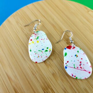 One-of-a-kind hand-painted earrings featuring an abstract shape and finished with high quality resin on both sides.