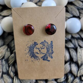 One-of-a-kind alcohol ink earrings featuring black and red, finished with high quality resin on both sides.