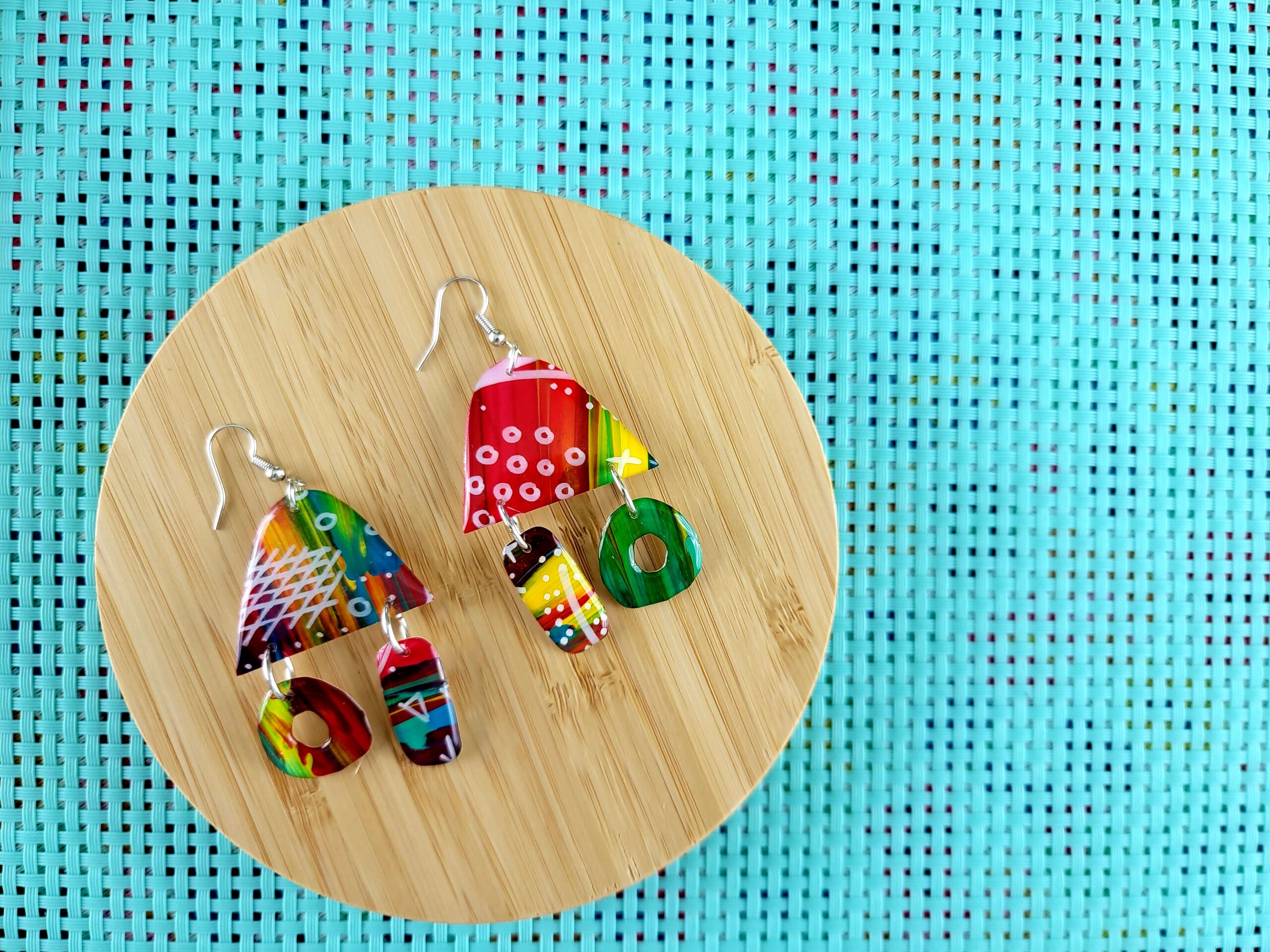 Even if the same technique and color combinations are used again, the outcome and composition of each piece is different every single time, making each pair of earrings truly one of a kind!