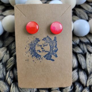One-of-a-kind alcohol ink earrings featuring blends of orange, pink and red, finished with high quality resin on both sides.