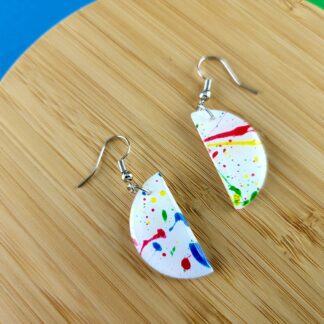 One-of-a-kind hand-painted earrings featuring a semi-circular shape and finished with high quality resin on both sides.